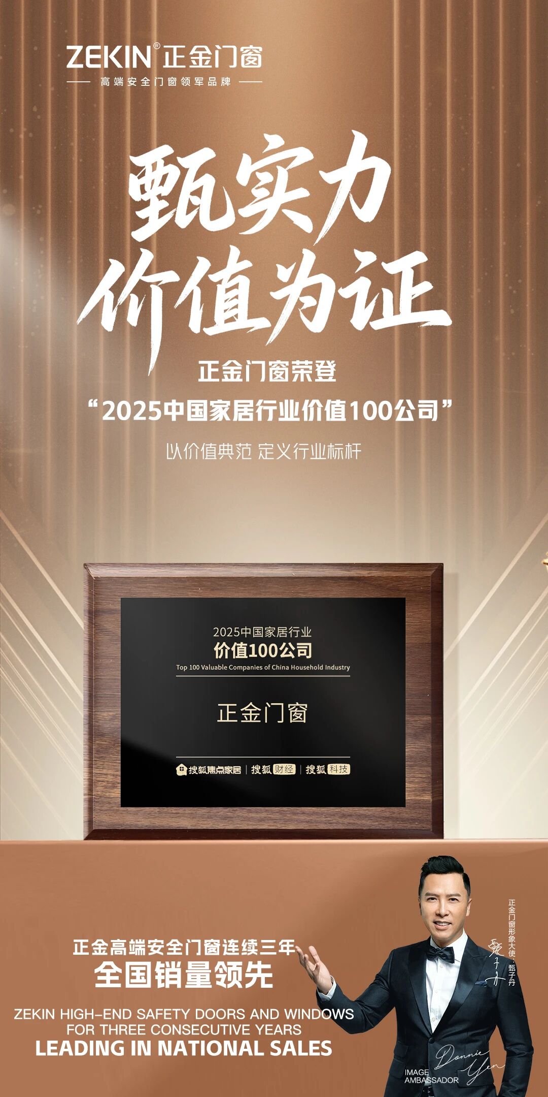 门窗十大品牌 甄实力 价值为证|正金门窗荣登“2025中国家居行业价值100公司”