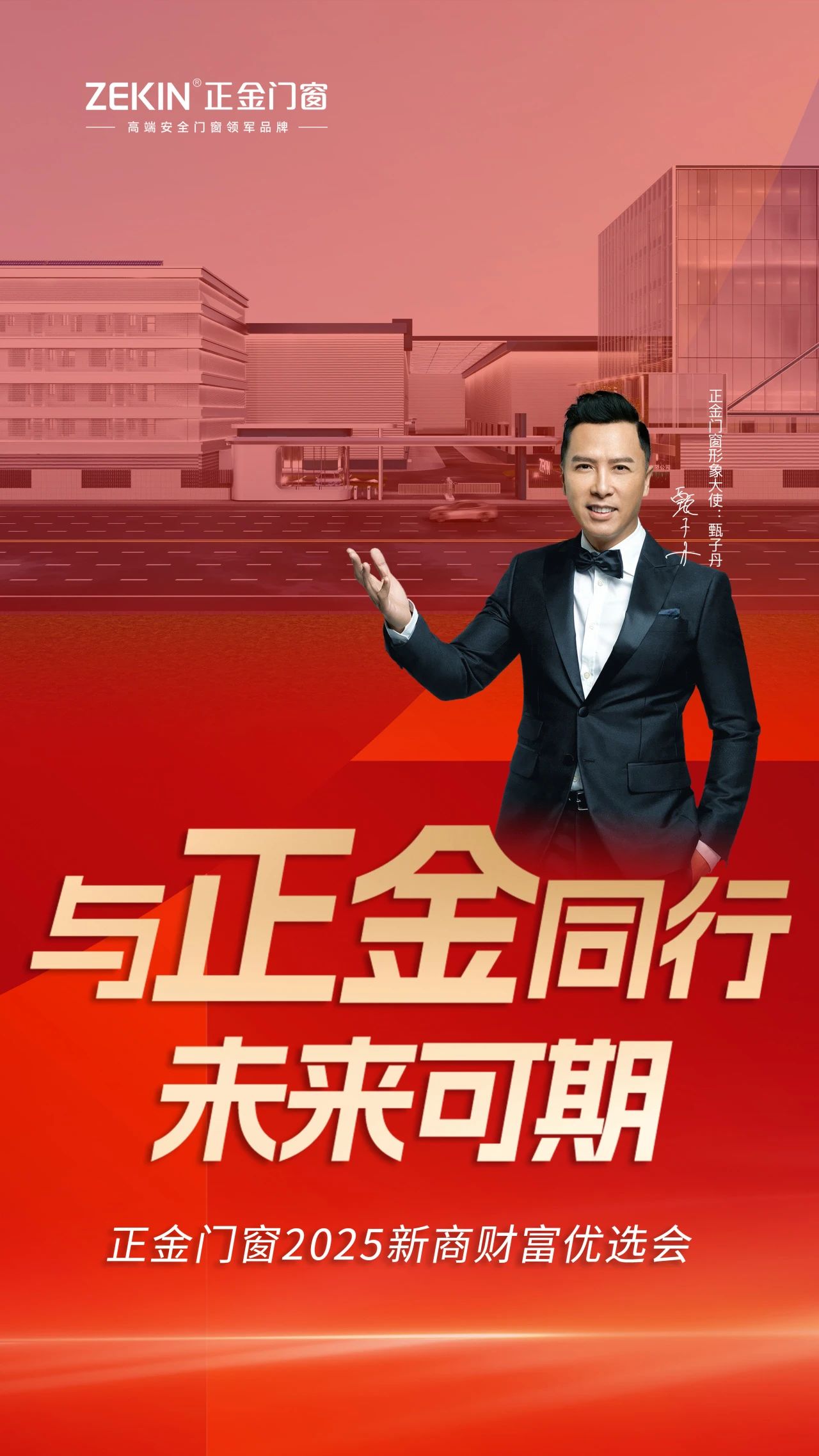正金门窗携手**功夫巨星甄子丹为品牌形象代言人,甄子丹代言为品牌注入人格魅力和情感价值,抢占大众的心智共识,使消费者更加认同正金门窗“甄功夫真品质”的民族品牌属性。最具咖位形象代言人助力品牌稳居一线行列,以明星资源为品牌撬动巨大流量入口。 正金门窗连续三年荣登中国品牌价值500强,连续三年荣膺中国门窗行业标志性品牌,连续三年高端安全门窗销量领先。充分彰显出正金门窗的品牌实力和极高辨识度,是行业发展的引领者与风向标,是被广大消费者选中的领军品牌。凭借雄厚品牌实力与行业影响力,精准助力终端门店利润增长,共享可持续财富盛宴! 正金门窗秉着“行大牌正道 做行业金品”的内核使命,按下互联网级产销一体化战略基地建设的加速键! 正金门窗互联网智造基地的建立,可以使品牌拥有更强大的产品力:依托规模效应与尖端智造,持续推出性能更卓越、设计更前沿、安全等级更高的门窗精品;更极致的交付力:互联网供应链的高效协同,确保订单响应更快、交付更准时、服务更无忧。 更澎湃的创新力:汇聚互联网智慧,加速新工艺、新设备和新技术的研发与应用,引领行业安全标准持续升级;更坚实的品牌力:向互联网市场有力证明中国门窗品牌具备定义高端、主导安全的能力与担当。 同时自建上下游生产基地。通过冠耀通玻璃、高美晶泳、欧纳铝业、原美肌肤瓷泳、正金门窗、濠江喷涂木纹、玮豪铝材、千珈美水性涂料等八大高端安全产业链,全产业链协同优势能够让正金门窗拥有超强抗风险能力,为加盟投资保驾护航。正金门窗以强大的品牌势能为您的事业注入强劲动力。 正金门窗为了让更多消费者了解品牌的新形象和扩大品牌影响力,拉升品牌知名度,以高炮广告形式密集投放重点高速干线核心路段,品牌强效曝光,实现大范围辐射,抢占流量制高点。